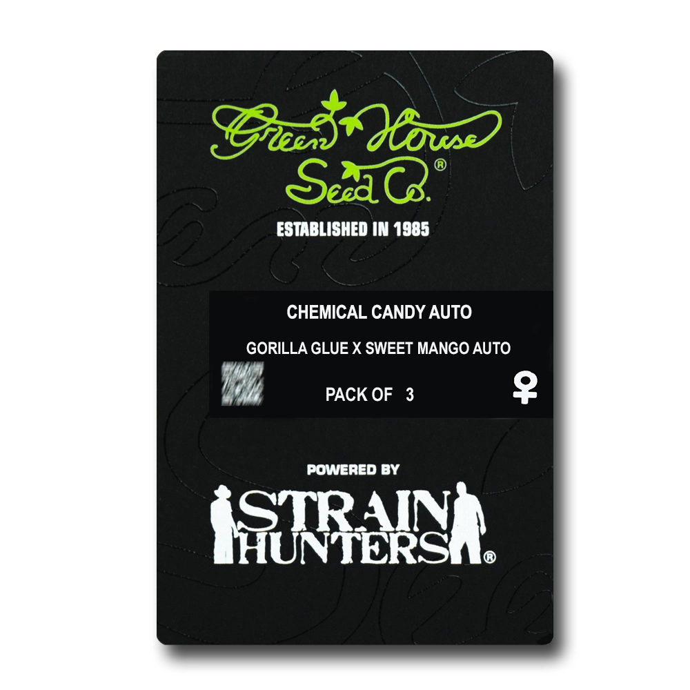 Chemical Candy Auto von Green House Seeds vereint die legendäre Potenz der Gorilla Glue mit der fruchtigen Süße der Sweet Mango Auto zu einem außergewöhnlichen Autoflower mit bis zu 22% THC, der in nur 8-9 Wochen beeindruckende Erträge und ein komplexes Aroma aus chemischen Trauben und tropischem Mango liefert.