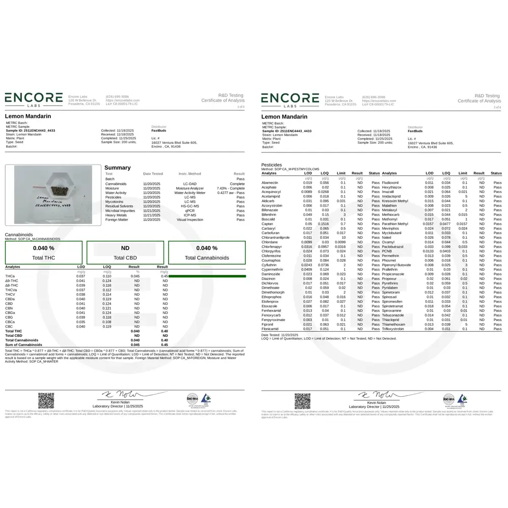 Lemon Mandarin ist das Ergebnis intensiver Züchtungsarbeit von Fast Buds. Diese Sorte ist für Liebhaber von allem Großen – Lemon Mandarin ist das Ergebnis der Kreuzung von zwei köstlichen Zitrus-Sorten: dem Keeper-Cut von Lemonade und Tangie (Crockett's Family Farms Selection). Fast Buds stellte sicher, dass sie die feinsten Attribute beider Eltern kombiniert: euphorische, belebende Effekte, wahnsinnige Trichom-Produktion und ein bitter-süßes Zitrus-Terpenprofil. Lemon Mandarin ist ideal für Liebhaber riesiger Bäume und XXL-Erträge: sie kann Höhen von bis zu 200cm erreichen, während sie extreme Resilienz und viel Seitenverzweigung zeigt. Ihr Aroma ist eine perfekte Mischung aus Tangie, Zitronen-Zeste und der beruhigenden Süße reifer Mandarine, die die Sinne in einen zutiefst pungenten Tangerine-Lemon-Duft einhüllt. Lemon Mandarin ist eine kräftige Hybrid-Sorte, die aus zwei der ikonischsten Zitrus-Kultivare gezüchtet wurde: dem Keeper-Cut von Lemonade und Crockett's Tangie. Das Ergebnis ist ein vigoroser Hybrid, der massives Wachstum, ein komplexes Zitrus-Terpenprofil und ernsthafte Potenz liefert. Mit ihrer schieren Größe und robusten Resilienz ist Lemon Mandarin für Grower konzipiert, die echte Cannabis-"Bäume" kultivieren möchten, und für Extractoren, die laute, zitruslastige Harze suchen. Lemon Mandarin ist das Ergebnis der Kreuzung von zwei ikonischen Zitrus-Kultivaren: Lemonade und Tangie (Crockett's Family Farms Selection). Jede Elternpflanze bringt eine einzigartige Komponente zum finalen Ausdruck bei.