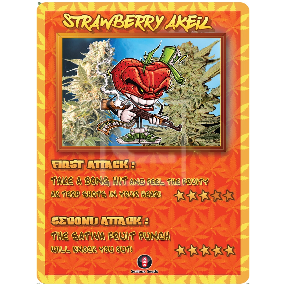 Die Strawberry AK von Serious Seeds vereint die legendäre Power der AK-47 mit einem unwiderstehlich süßen Erdbeer-Aroma – ein preisgekrönter Hybrid, der durch enorme Harzproduktion und ein euphorisches High besticht.