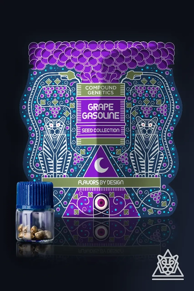 - Grape Gas: Die legendäre Kreuzung von Cannarado's Grape Pie und Compound's Jet Fuel Gelato ist bekannt für intensiv-süße Trauben-Aromen kombiniert mit scharfem Benzin-Finish. Mit bis zu 25% THC und dunkelvioletten, frostbedeckten Buds bringt Grape Gas die kraftvollen Gas-Terpene und die beeindruckende Bag Appeal in die Kreuzung ein.