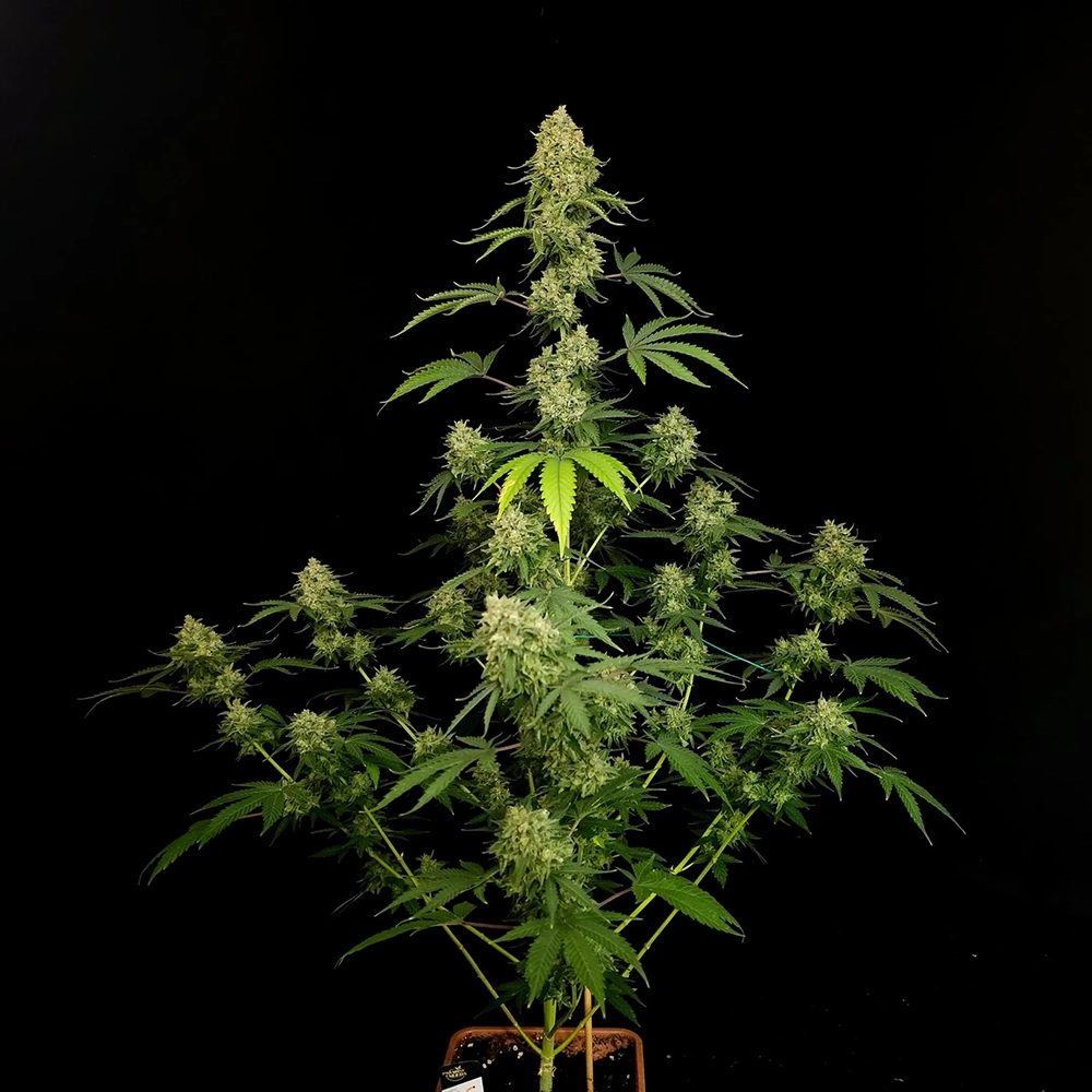 Die kompakte Indoor-Größe von unter 120cm macht diese Sorte ideal für Grows mit begrenzter Höhe. Empfohlen wird eine Vegetationszeit von 3-5 Wochen, um die Pflanzen auf eine angemessene Größe zu bringen, bevor du auf 12/12 umstellst. Die Pflanzen entwickeln eine kräftige Hauptcola mit mehreren produktiven Seitenzweigen, die dicke, harzbedeckte Buds produzieren. Die Wappa-Genetik sorgt für robuste, stabile Pflanzen mit kurzen Internodien und dichter Blütenstruktur – perfekt für Sea of Green (SOG) oder Screen of Green (SCROG) Setups.