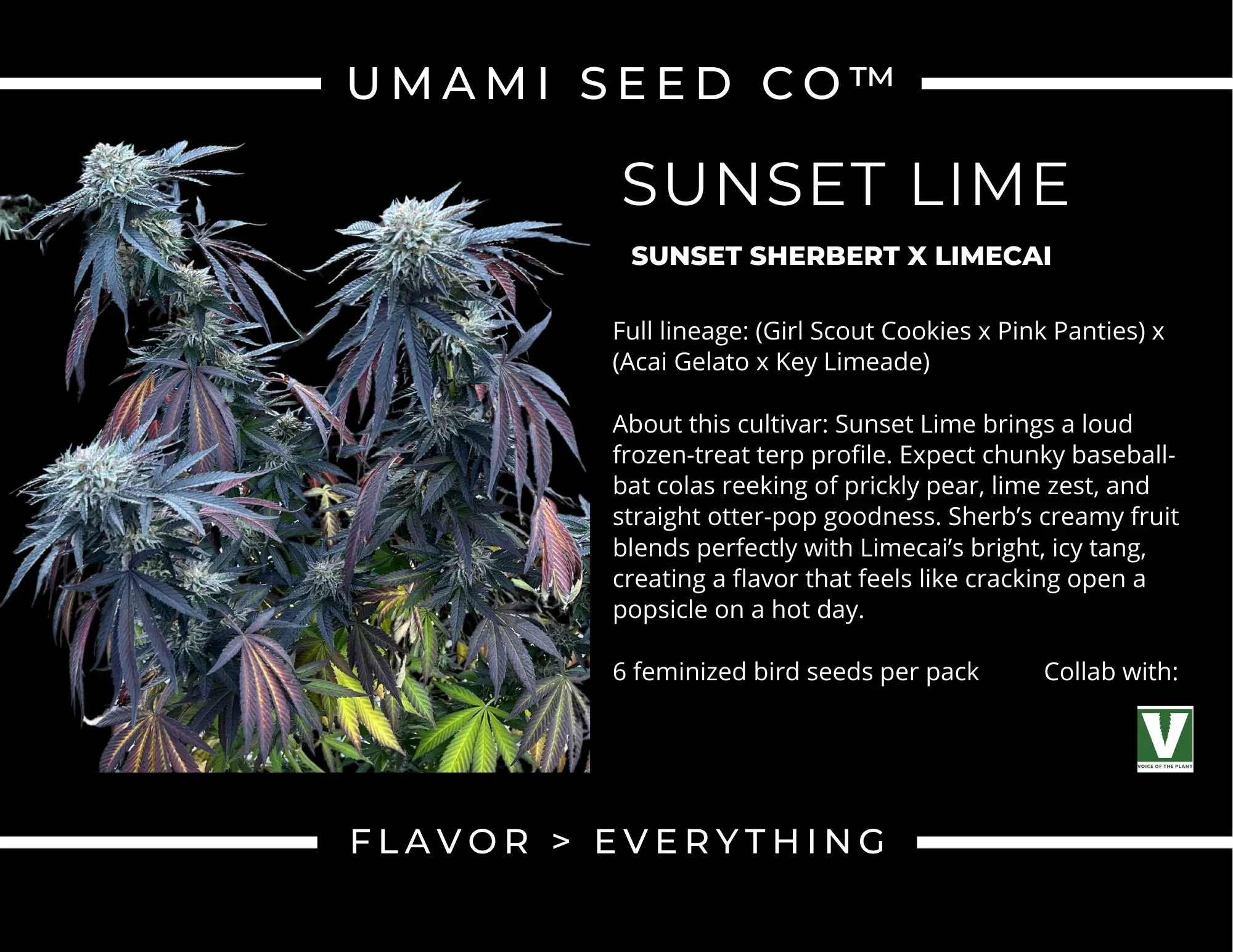 Bestelle jetzt deine Sunset Lime Samen und erlebe das einzigartige Gefriertruhen-Terpenprofil von Umami Seeds!